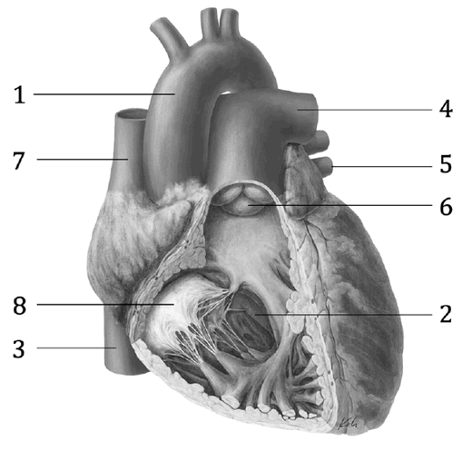 Найдите три ошибки в приведенном тексте. Укажите номера предложений, в которых они сделаны. (1) Сердце человека располагается в грудной полости. (2) Его предсердия сообщаются между собой. (3) Между предсердиями и желудочками имеются створчатые клапаны, которые открываются только в стороны предсердий. (4) Кровь из левого желудочка поступает в аорту, а из правого желудочка – в легочную вену. (5) Сердце работает непрерывно в течение всей жизни человека. (6) Работоспособность сердца объясняется ритмичными чередованиями сокращения и расслабления предсердий и желудочков. (7) На работу сердца оказывают влияние импульсы, поступающие по симпатическим и парасимпатическим волокнам.