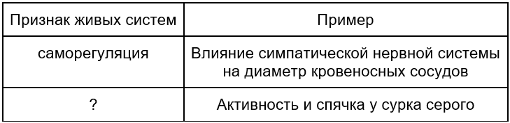 Рассмотрите таблицу «Признаки живых систем». Запишите в ответе пропущенный термин, обозначенный в таблице вопросительным знаком.