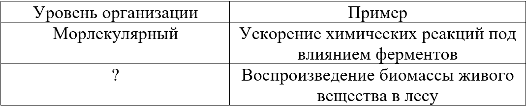 Рассмотрите таблицу «Уровни организации живого» и заполните ячейку, вписав соответствующий термин.