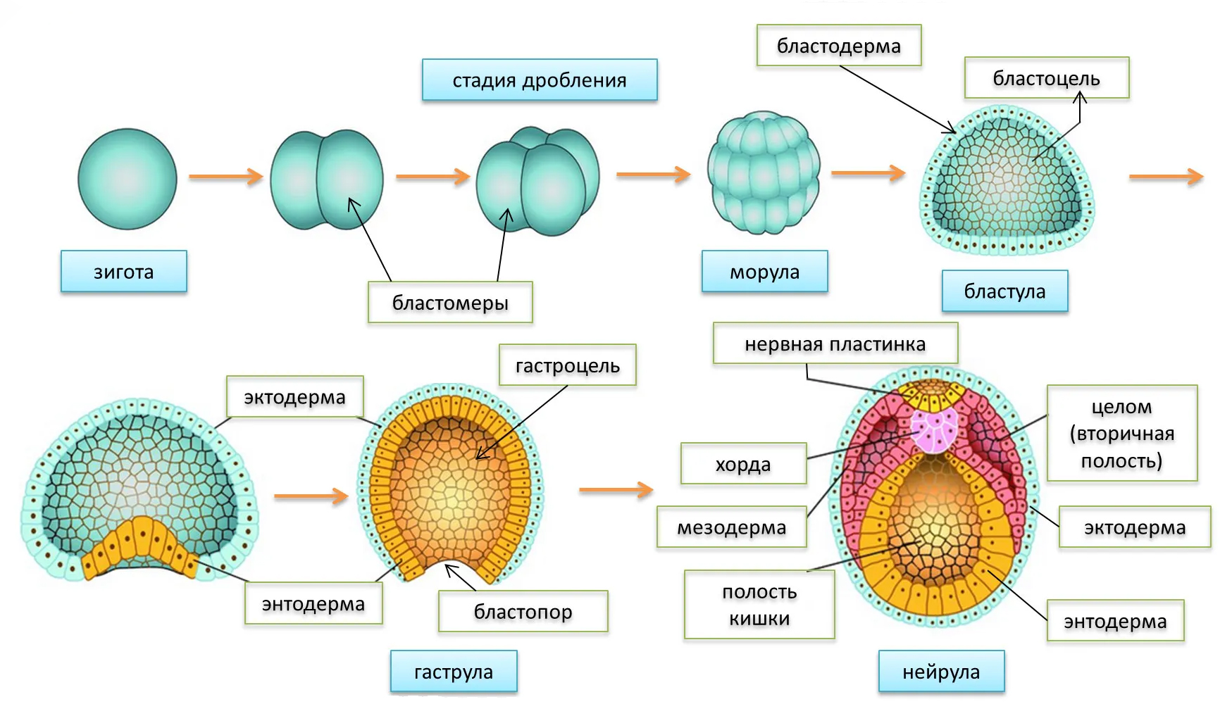 МОРУЛА-БЛАСТУЛА-ГАСТРУЛА-НЕЙРУЛА