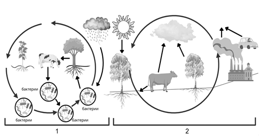 2. Установите соответствие между примерами и функциями живого вещества биосферы: 1) энергетическая, 2) газовая. Запишите цифры 1 и 2 в порядке, соответствующем буквам.