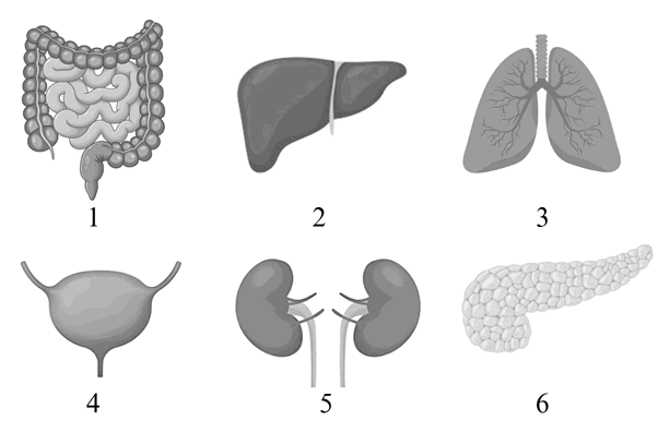 Выберите три верных ответа из шести и запишите цифры, под которыми они указаны. Какие органы расположены в брюшной полости человека?